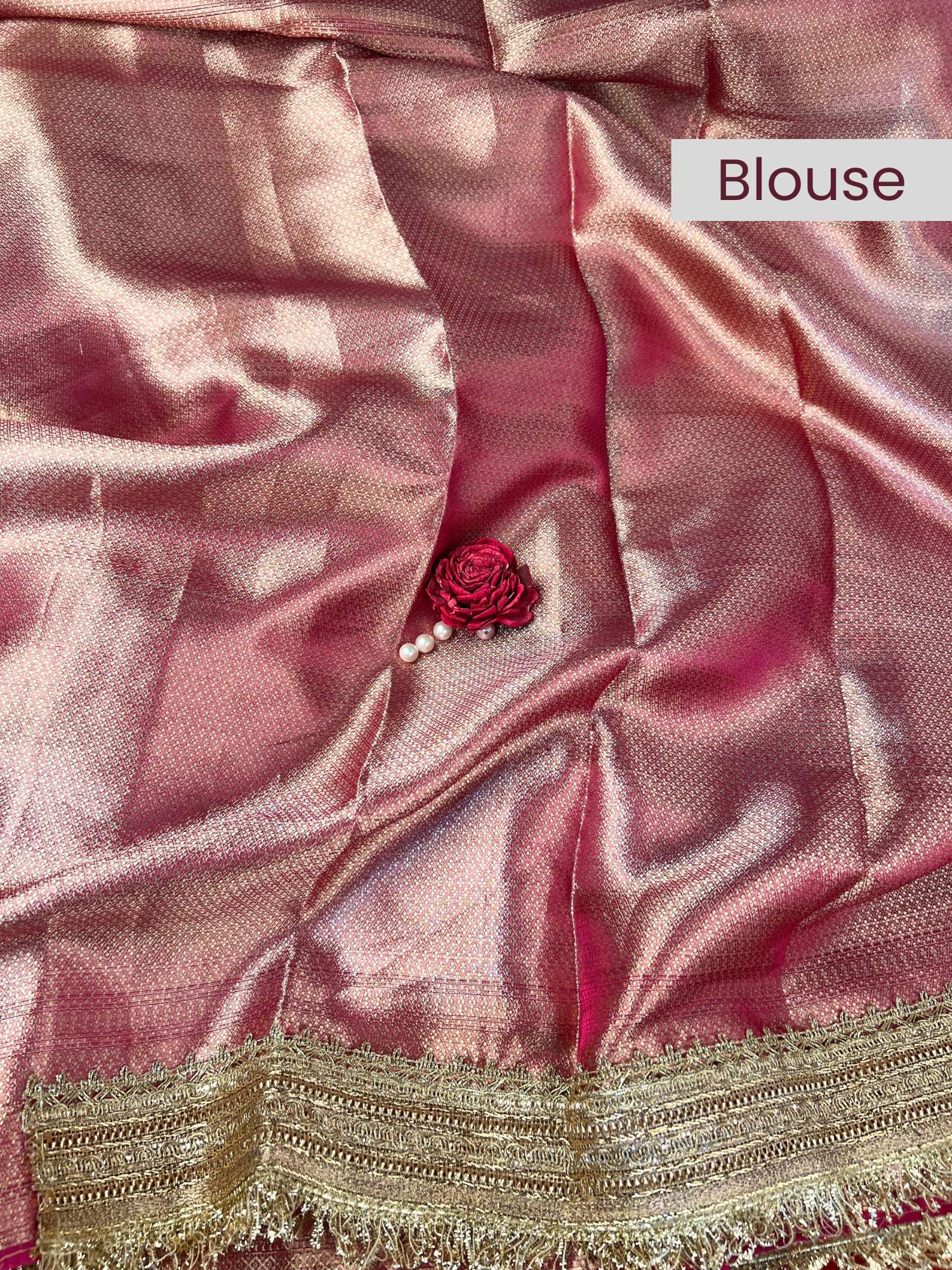 Hot Pink Gaj Motif Banarasi Tissue Silk Saree
