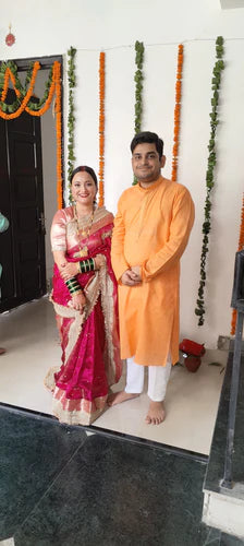 Please note that our textiles are handcrafted and handwoven leading to slight irregularities in design and fabric making each piece unique from others. Additionally, professional lighting may cause some colours to look slightly different on screen from what they would look like in real life. We sincerely hope you will appreciate and respect these unique traits of handloom products. For more clarity on your purchase, kindly contact us for a video call.