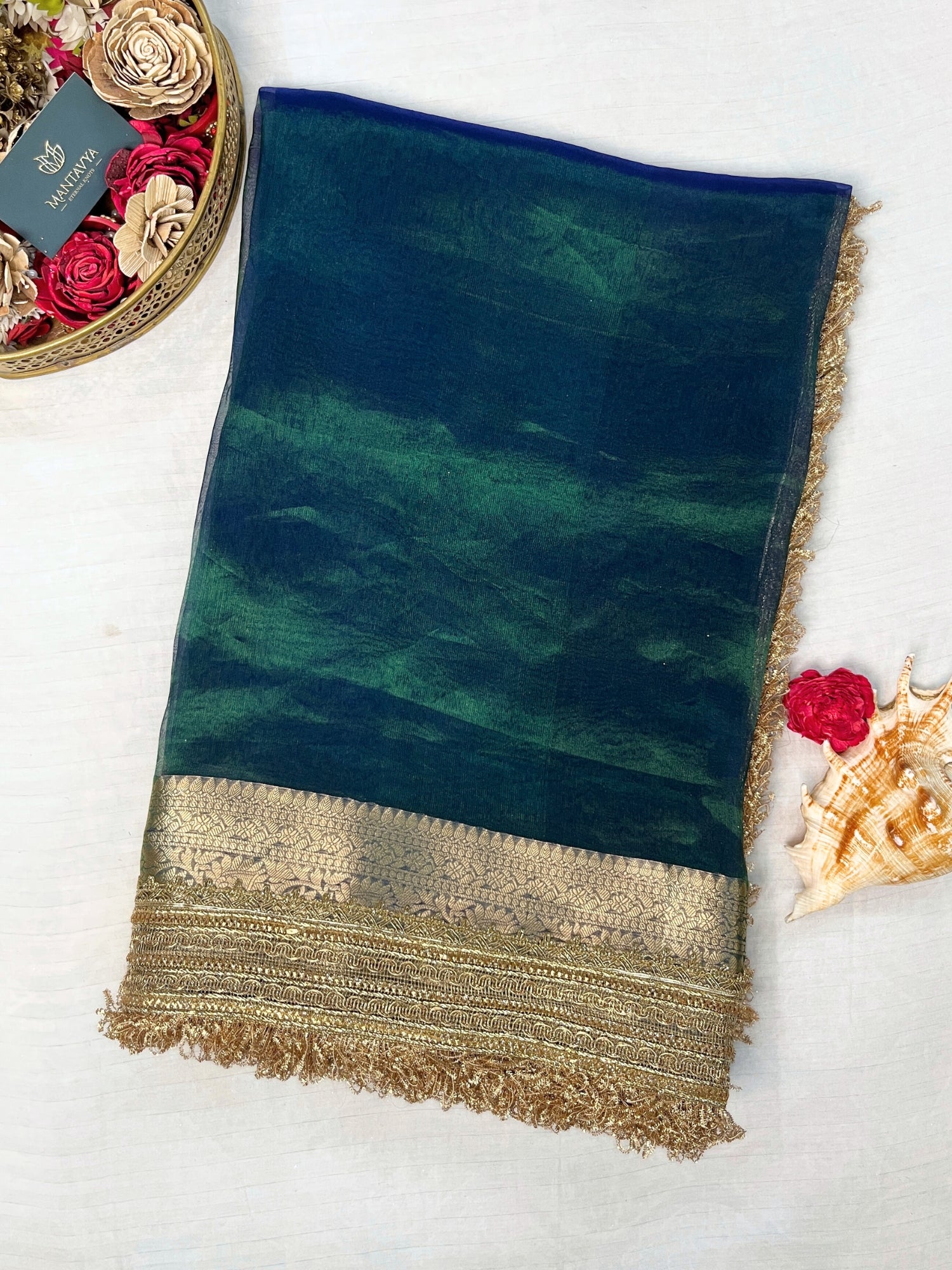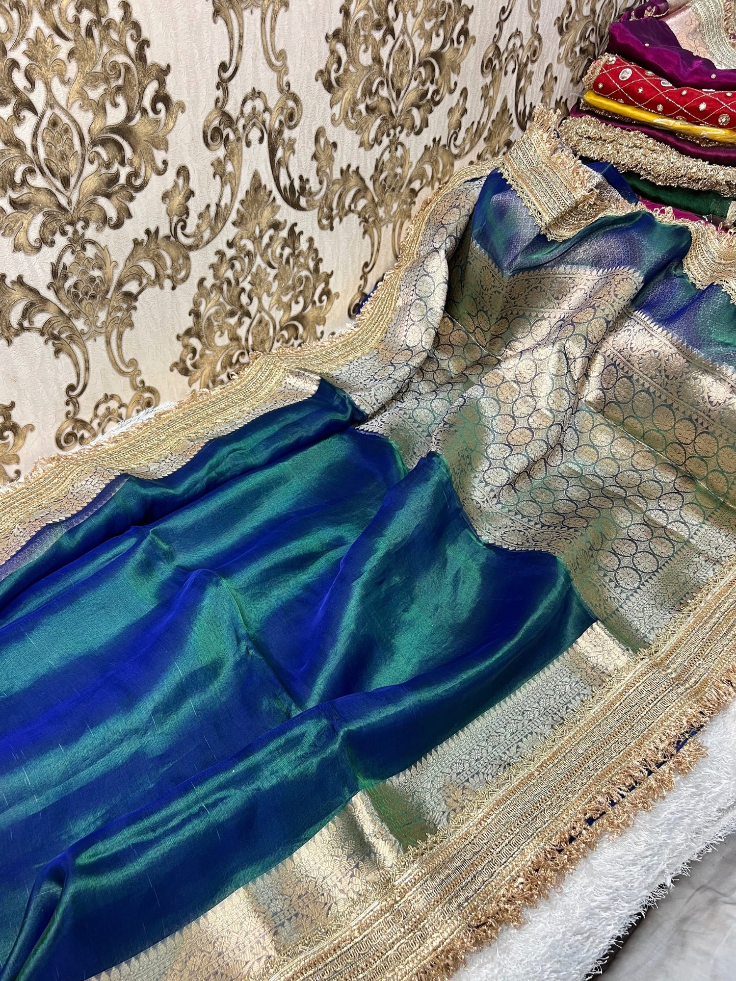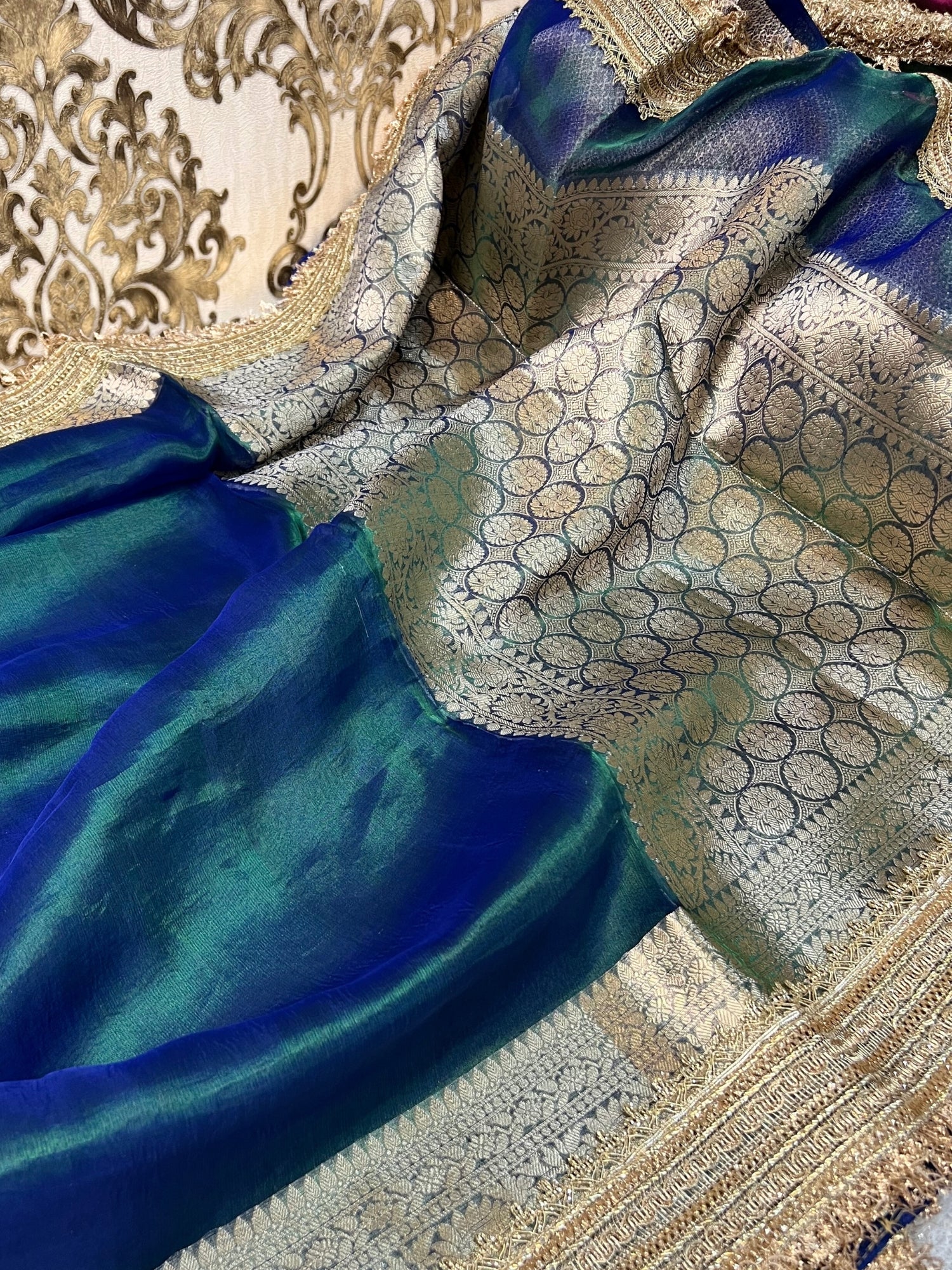 Peacock Teal Blue-Green Pure Banarasi Tissue Silk Saree
