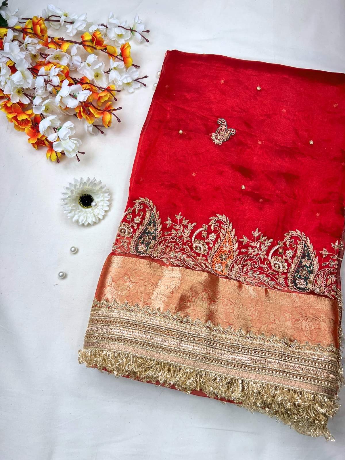 Presenting the Taarini Saree, a luxurious creation made from 100% pure Banarasi tissue silk. This best saree reflects the timeless beauty of Banarasi silk with its rich texture, natural sheen, and elegant handcrafted detailing. The premium tissue silk fabric offers a graceful drape, making it perfect for weddings, festive occasions, and special celebrations. Designed for women who appreciate tradition and elegance, the Taarini saree blends classic craftsmanship with royal charm. Elevate your ethnic wardrobe with this authentic Banarasi silk saree that promises sophistication, comfort, and everlasting style.