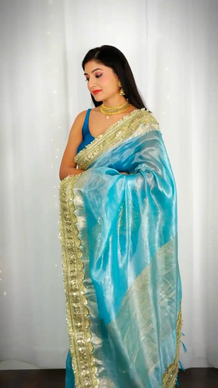 Sky Blue Pure Tissue Silk Saree